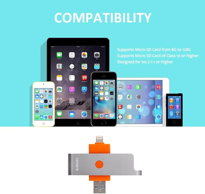 Omars Apple認証 (MFI取得) カード リーダー USB メモリiPhone iPad iPod touchの容量不足解消 (lightning カードリーダー, オレンジ) | KAZESHOP
