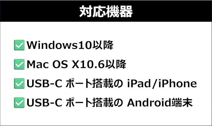 ✅対応OS:Mac OS X10.6以降/ Windows10以降/USB-Cポート搭載のiPad, iPhone, Android端末 ✅保証期間:購入より2年間✅製造国:台湾