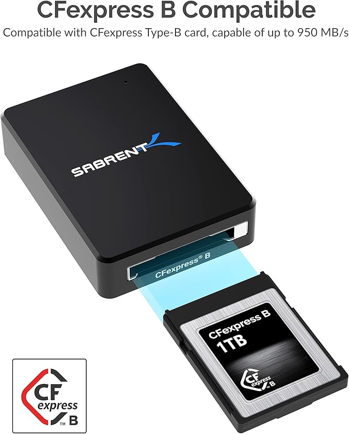 幅広い互換性:最大950MB/秒のCFexpress タイプBカードに対応。USB Type-C OTG対応スマートフォンにも対応。USBの速度制限でThunderboltに対応。