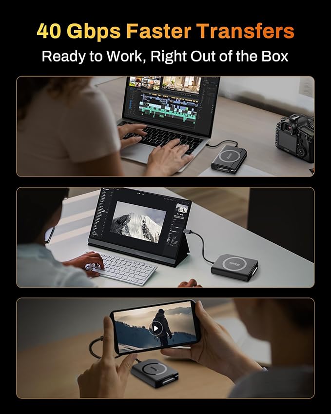 【3350MB/s超高速転送】CB500との併用で最大3350MB/s。4K・RAW素材の高速転送に最適。