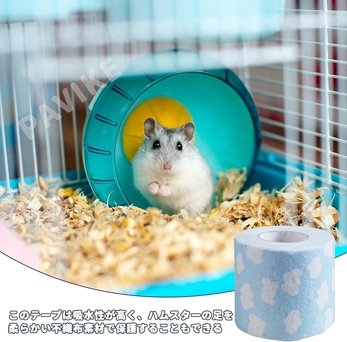 【優れた吸水性能】当社のテープは優れた吸水性能を持ち、回し車内のハムスターの尿を素早く吸収し、環境を乾燥して清潔に保ちます。このテープはハムスターが回し車でおしっこするのを効果的に防ぎ、環境を衛生的で乾燥した状態に保ちます。