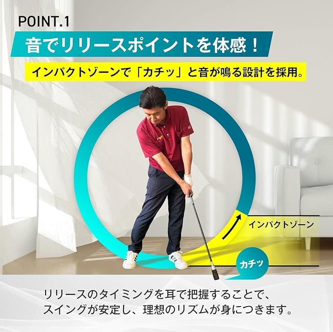✅【音でリリースポイントを体感】インパクトゾーンで「カチッ」と音が鳴る設計を採用。リリースのタイミングを耳で把握することで、スイングが安定し、理想のリズムが身につきます。