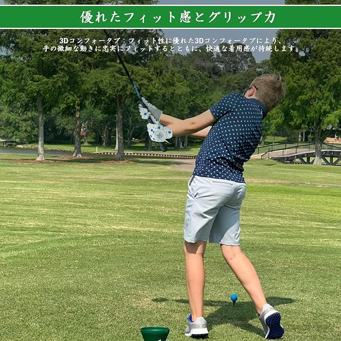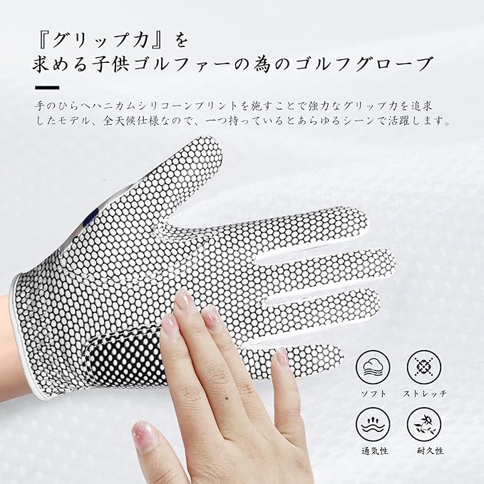 【通気性が良い】:通気性のある素材で、暑い日でも速乾性と快適さを実現します。子供たちは不快感なく長時間ゴルフを楽しむことができ、手を涼しく新鮮に保ちます。