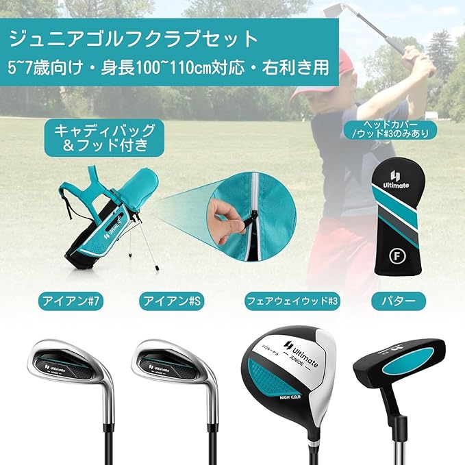 ⭐セット内容:キャディバッグ、クラブ4本セット(FW#3、I#7、I#S、PT)、ヘッドカバー(FW#3のみあり)