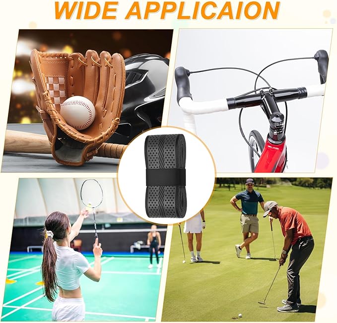 このテニスラケットグリップテープは、幅広いスポーツギアにシームレスにフィットします。 ほとんどのピックルボールラケット、テニスラケット、スカッシュラケット、野球バット、バドミントンボール、ゴルフ、釣り竿、自転車のハンドルバーなどに適しています。 様々なスポーツのアスリートの多様なニーズを満たすため、テニスラケットのグリップを向上させます。