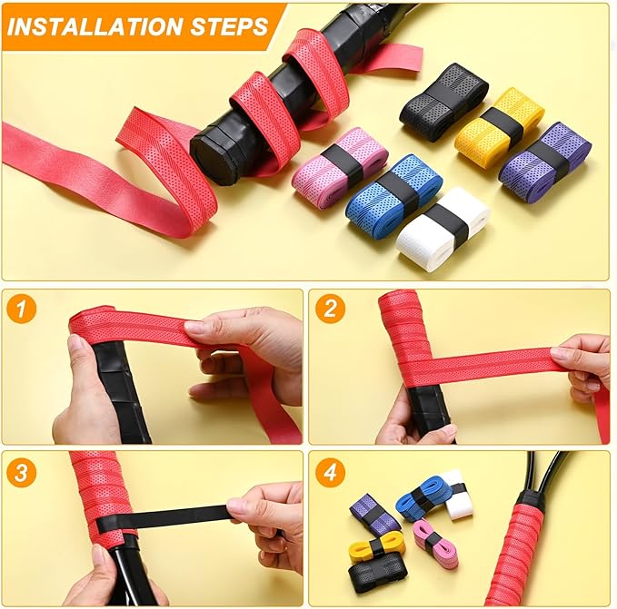 [多目的使用] - これらのテニスラケットつかみテープは、さまざまなスポーツ用具にシームレスに適合します。ほとんどのピクルボールラケット、テニスラケット、スカッシュラケット、野球バット、バドミントンボール、ゴルフ、釣り竿、自転車ハンドルなどに適しています。さまざまなスポーツのアスリートの多様なニーズを満たすため、テニスラケットのつかみを向上させます