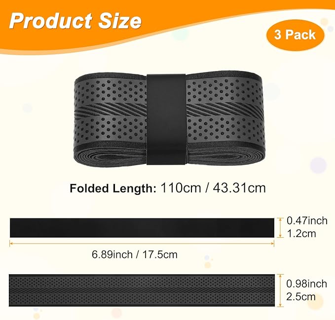 [サイズ&パッケージ] - 3パックのアンチスリップゴルフクラブつかみテープ; 素材: PU; カラー: 黒; サイズ: 折りたたみ時の長さ: 110 cm/ 43.31インチ; 幅: 25 cm/0.98インチ; 厚さ: 0.75 cm/ 0.3インチ