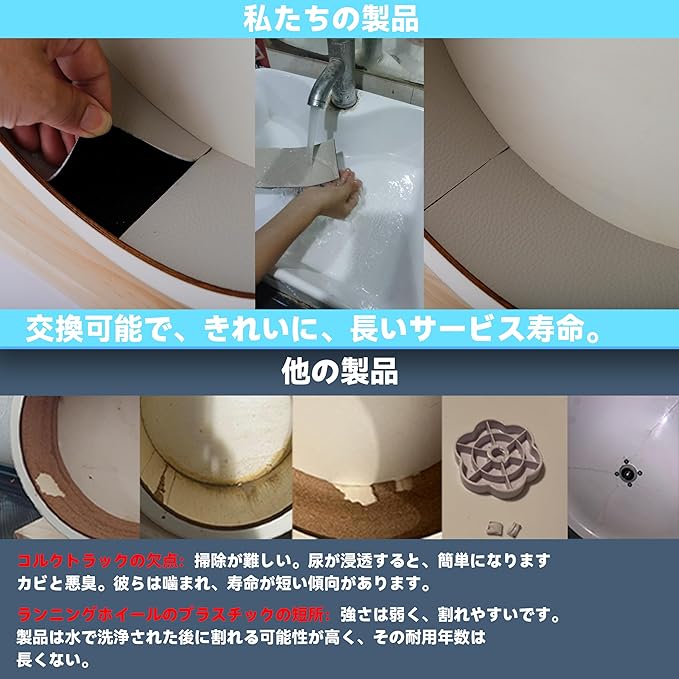 洗える防水・滑り止めトラック: トラック部分は防水・耐磨耗性に優れ、取り外して水洗い可能。本体内部は二重防水構造で保護されており、清潔さを長期維持できます。