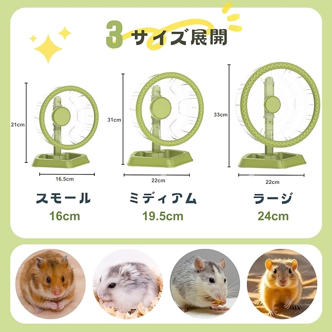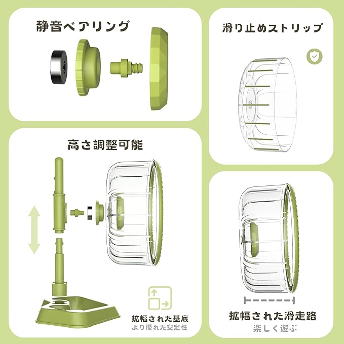 ハムスター 回し車 サイレントホイール 静音設計 安定性に優れ 調節可能スタンド付き ゴールデンハムスター ジャンガリアン ドワーフハムスター キンクマ 沙鼠 ハリネズミ 小動物用 (グリーン, 16cm) | KAZESHOP