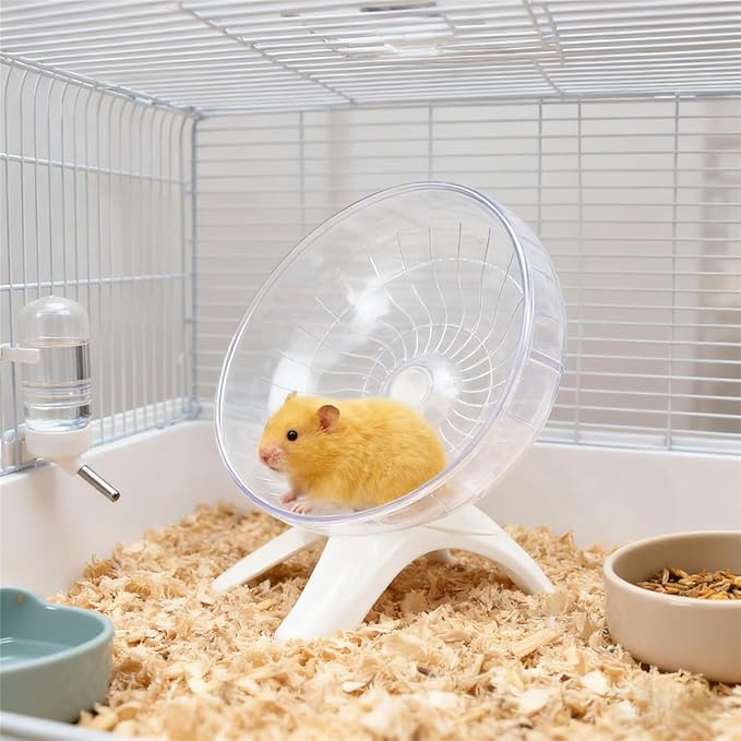 【小動物用運動器具について】 本品はプラスチック樹脂を主材料とした動物用の回転式運動器具です。ディスク部には表面加工が施されており、動物の足場を確保する構造となっています。内部機構にはベアリング部品が組み込まれております。部品の分解と組み立てが可能な構造で、水を用いた洗浄に対応しています。げっ歯類や小型哺乳類を飼育されている環境において、運動補助器具として設置することができます。ケージ内の限られた空間でも設置可能なサイズ設計です。動物飼育における日常の管理作業を想定した、機能性を重視した製品です。