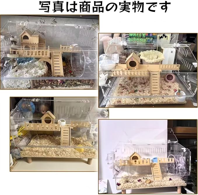 【透明アクリル】透明なアクリルにより、どの角度からでもペットの動きが見え、楽しい観察時間を提供します。ペットの遊びや休息を見守ることができます。丸まって眠っているハムちゃんがうっすら見えて、とてもかわいいです。