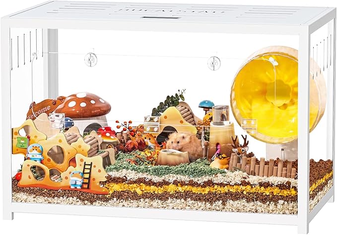 BUCATSTATE ハムスター ケージ メタル製 65cm クリア 透明 水槽タイプ 2つ扉 フロントドア最適化 組み立て簡単 耐久性 安定感 おしゃれ 大型サイズ ゴールデンハムスター キンクマ ハリネズ 爬虫類など 小動物用 ホワイト W65 D40 H42cm | KAZESHOP
