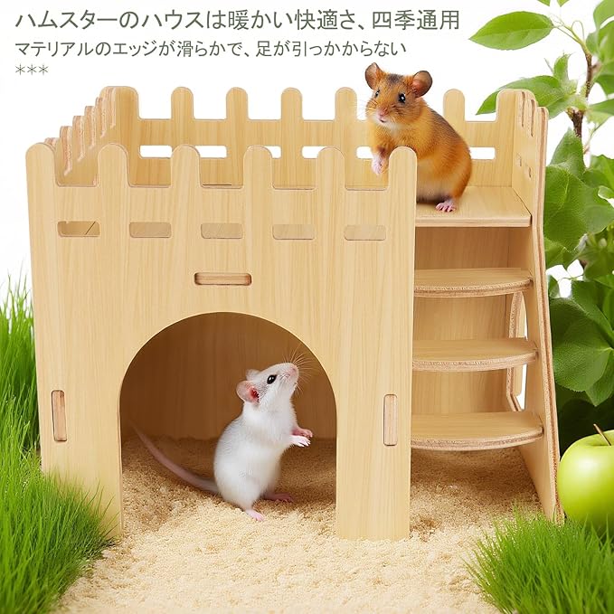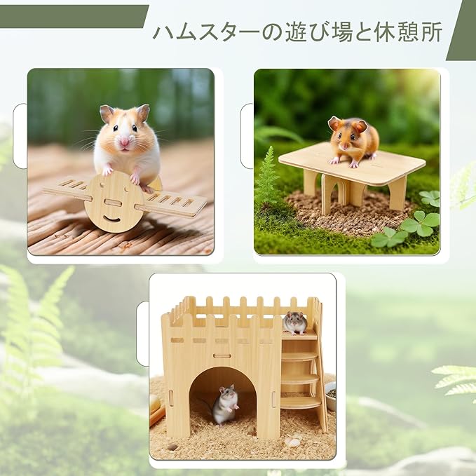 【高品質の素材】ハムスター家は環境に優しい実木の材質を使用し、丈夫で長持ち。 表面は滑らかでバリがなく、ペットの皮膚を傷つけません。