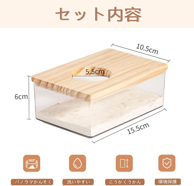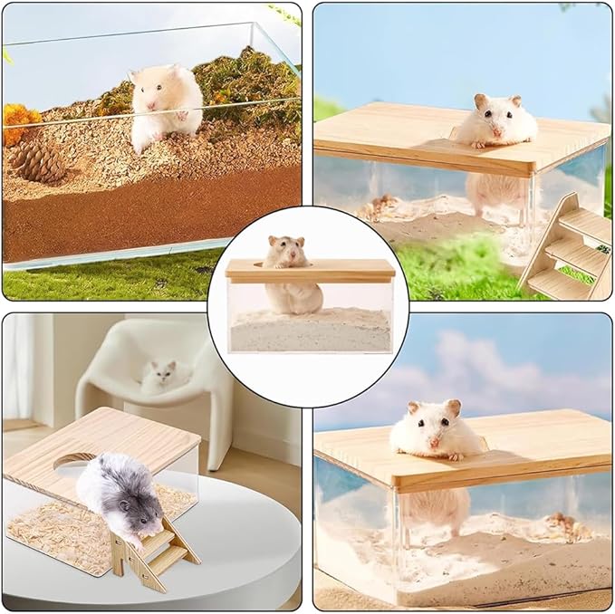 1.耐久性抜群の素材:防カビ・防汚加工済みの高品質木製カバーと耐衝撃アクリルを採用、アクリル製で丁寧な仕上がり、ハムスターの健康と安全を考慮して設計されています、機能性とデザイン性を兼ね備えた一品です。