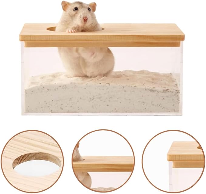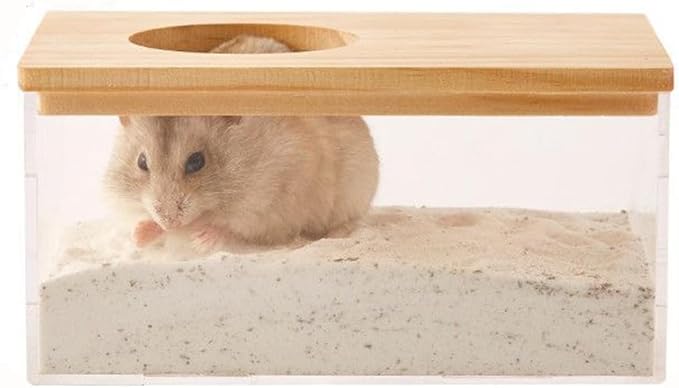 YFFSFDC ハムスターの砂浴 バスルーム 砂浴び容器 トイレ 小動物用シャワールーム 小型ペット用トイレ 洗面所 遊び場 多機能 掃除しやすい 飛び散り防止 透明 ハムスター全種対応 (15.5*6*10.5cm) | KAZESHOP