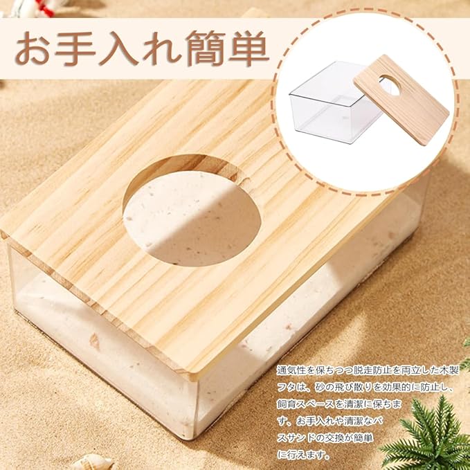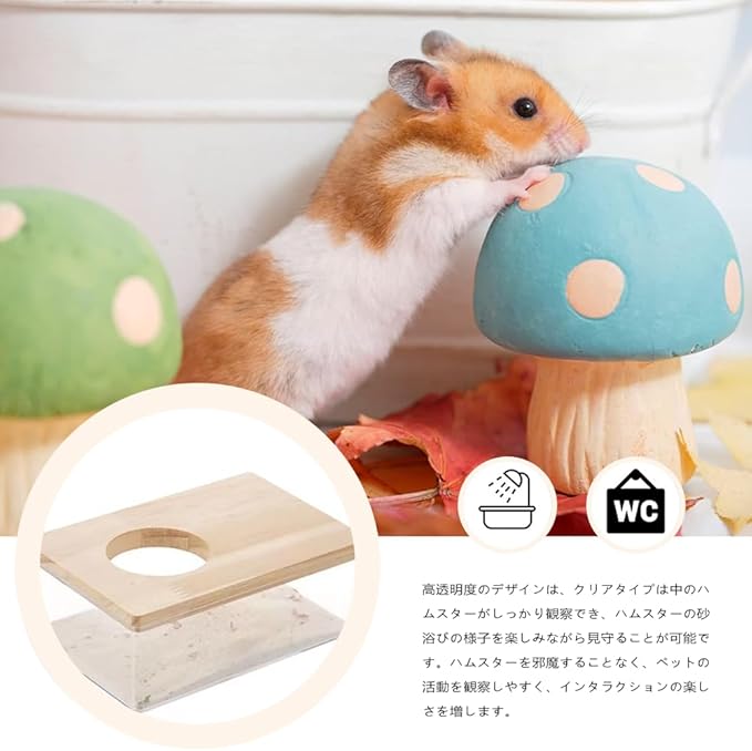 5.多機能用途:幅広いハムスターの種類に対応し、砂浴び以外にも、エサ入れや遊び場としても使用可能で、ハムスターの生活を豊かにします。
