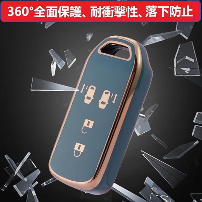 【360 全面保護】キーケースには高品質衝撃を吸収してくれるTPU素材を採用しており、軽量で丈夫で弾力がある、防塵、耐衝撃、耐水性、着地緩衝の効果があります。キーケースの表面は特殊なコーティングを採用し加工がされております、水滴が玉のように弾く程の撥水、自動車の鍵を腐食や破壊からしっかり守られ。360 全面保護、するため 落としてもキーに 傷がつくことはありません。
