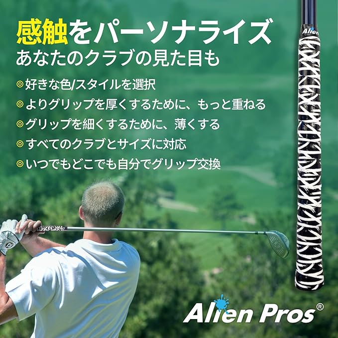 Alien Pros ゴルフラッピングテープ(3/6/12/24個セット) - 革新的なゴルフクラブグリップソリューション-1分以内に、新しいグリップに生まれ変わります
