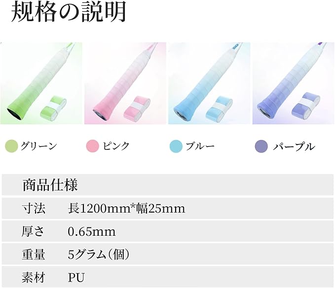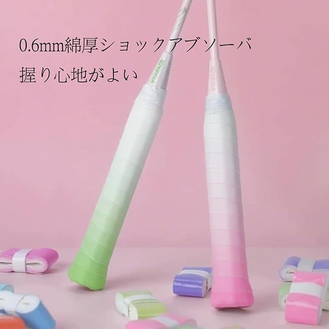【多彩な使用場面】テニスラケット、バドミントンラケット以外にも、釣り竿、ゴルフクラブ、自転車のハンドル、オートバイのグリップ、ドラムスティック、フェンシング道具、トレーニング機器など、様々なアイテムの滑り止めグリップとしてご利用いただけます。携帯に便利で多用途に活躍します。