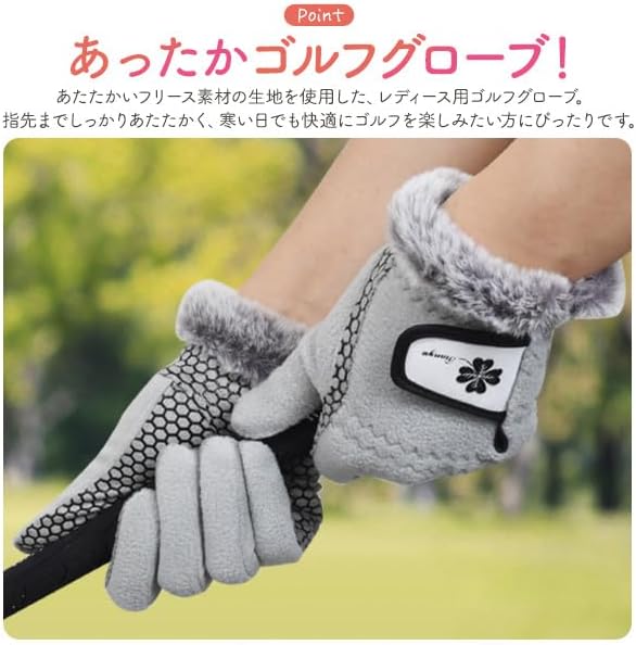 【あたたかいレディース用ゴルフグローブ!】あたたかいフリース素材の生地を使用した、レディース用ゴルフグローブ。指先までしっかりあたたかく、寒い日でも快適にゴルフを楽しみたい方にぴったりです。