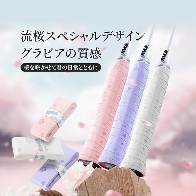グリップテープ「流桜限定デザイン」 (3本入り/6本入り) バドミントンラケット用グリップテープTennis Grip Tapeプロ滑り止めキュートなデザイン|衝撃吸収汗吸収通気性 | KAZESHOP