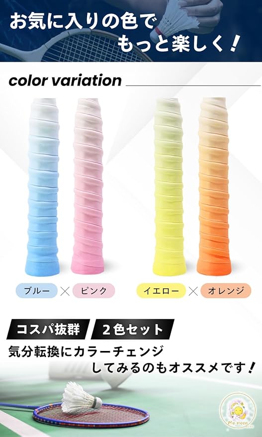 mo moon バドミントングリップテープ ゴルフ 釣り竿 テニス グラデーションカラー 2枚セット 滑り止め 衝撃吸収 吸水性の良い