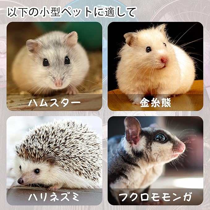 【適用範囲】ハリネズミ、ハムスター、チンチラ、モルモット、リス 、モモンガなど小動物に適用。可愛いに元気な姿を見れます。