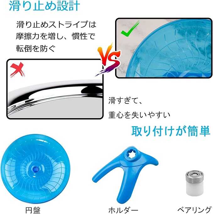【滑り止め設計】滑りにくい設計で、ハムスターが走っても安全です,インストールと清掃が簡単です。いつも清潔な状態に保つことができます。