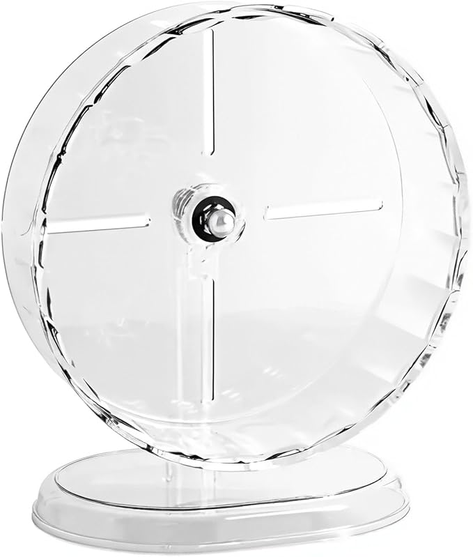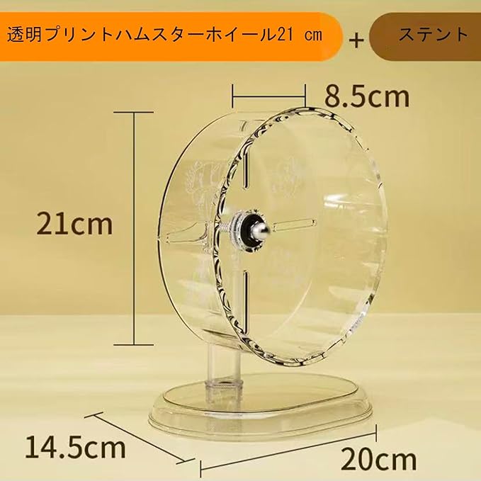 透明スタンド - クリアなスタンドが視界を遮らず、ペットの走る姿をいつでも観察できて安心。狭いケージ内でも圧迫感を与えず、すっきりと収まります。