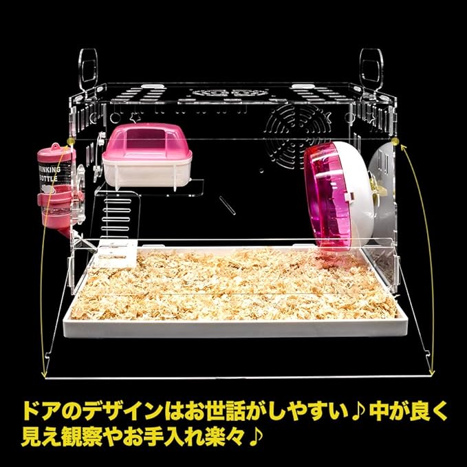 ハムスターケージ 厚手タイプ 脱出にくい 驚きの透明感 まわし車 給水ボトルなど含めて7点セット 組立式 持ち運びやすい トレーデザイン お掃除しやすい 通気穴いっぱい 2段まで積み重ね可能 持ち運びやすい エコなアクリル製 (四代目 ) (ピンク) | KAZESHOP