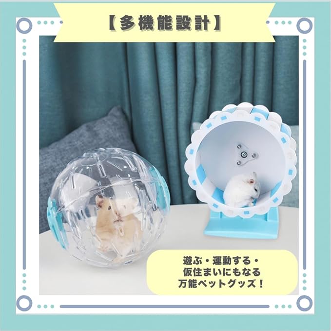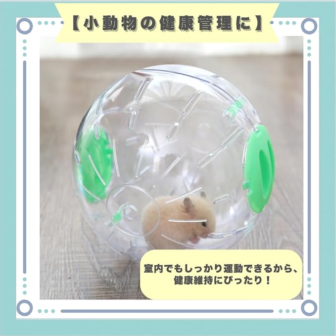 【小動物の健康管理に】室内でもしっかり運動できるから、健康維持にぴったり!【遊びでエクササイズ】楽しみながら運動できるから、毎日の活動量もバッチリ。【透明ボディで安心】中の様子がひと目でわかるから、常に安全を確認できます。【多機能設計】遊ぶ・運動する・仮住まいにもなる万能ペットグッズ!