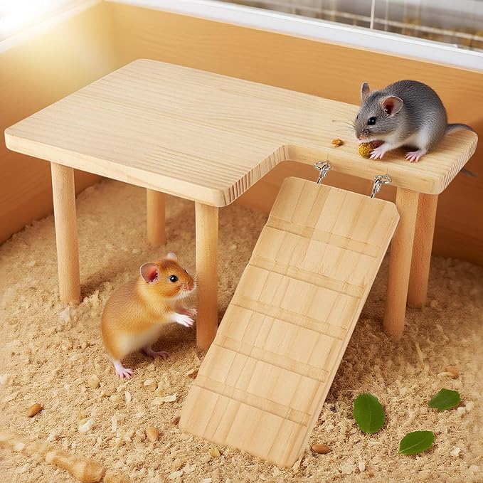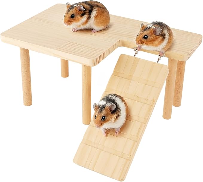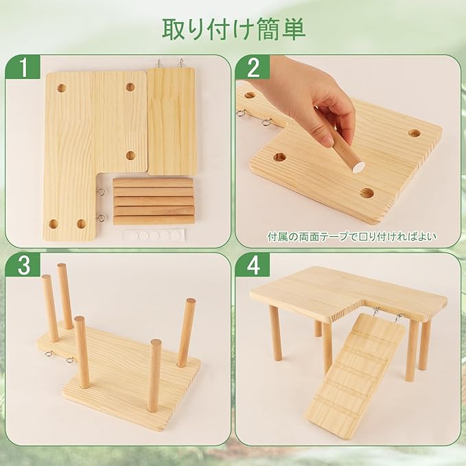 【高品質の素材】ハムスターステージは環境に優しい実木の材質を使用し、丈夫で長持ち。 表面は滑らかでバリがなく、ペットの皮膚を傷つけません。耐久性があり、安全に噛むことができます。