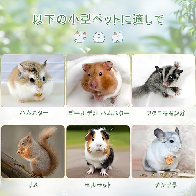 【小型ペットに最適】ハムスターだけでなく、ゴールデンのハムスター、モルモット、フクロモモンガ、リス、チンチラさまざまな小動物にも適しています。