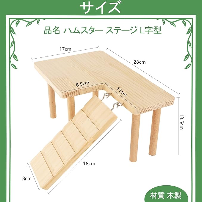 ハムスター ステージ プラットフォーム L字型 チンチラ ステップ 木製 踏み台 はしご ハムスター おもちゃ 階段 遊び場 厚い 丈夫 耐久性 取り付け簡単 飼育ケージ内装 ストレス解消 運動不足 小動物用品 | KAZESHOP