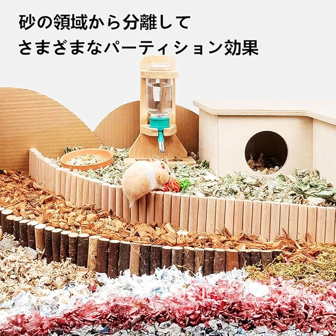 【手作りで耐久性ある】:ポプラの木の棒は高温で乾燥され、ペットに安全で長持ちします。噛むときのペットの歯と齧歯類にとって素晴らしいおもちゃです。寝具は砂の領域から分離して、あなたが望むさまざまなパーティション効果と自然の風景環境を提示します。