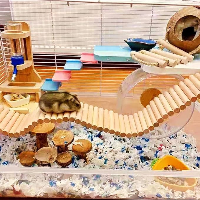 ハムスター はしご 階段 ステップ フェンス 天然木製 自由に曲げる モルモット ハリネズミ 小動物おもちゃ ケージ飾り ウッドブリッジ 遊び場 クセサリー 掃除やす 運動不足解消 | KAZESHOP