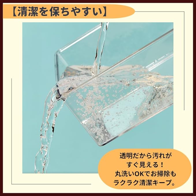 【清潔を保ちやすい】透明だから汚れがすぐ見える!丸洗いOKでお掃除もラクラク清潔キープ。