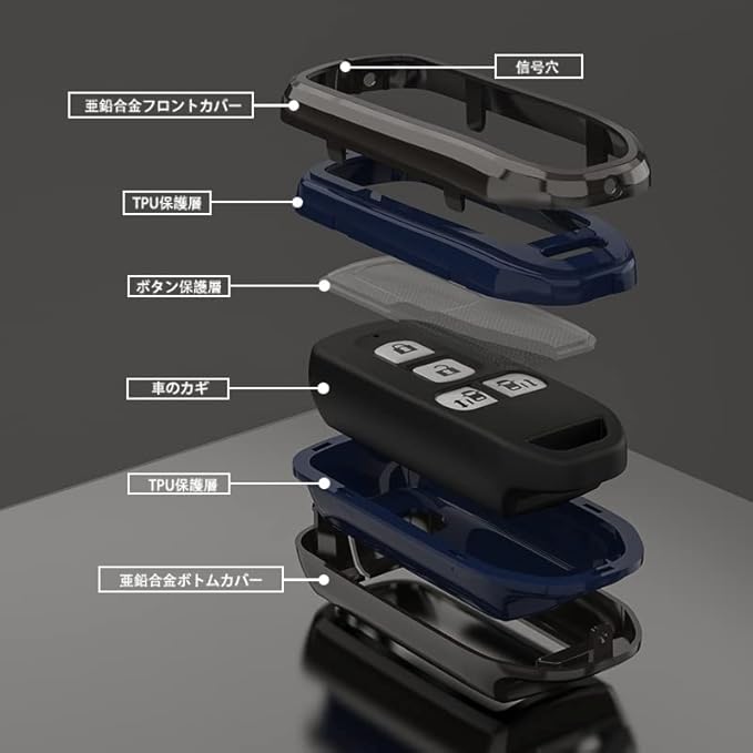 【高質材料】:車のキーケースの裏面は亜鉛合金製で、キーケースのボタン部分は透明TPU製ですので、フロントキー部分は比較的柔らかいです。外層は亜鉛合金で構成されており、耐高温性、耐腐食性があり、色あせしません。