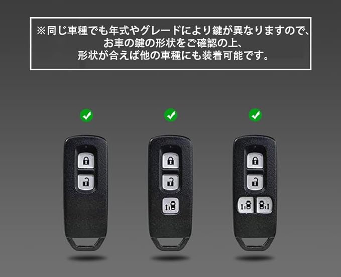 【適用車型】:ホンダ Nシリーズ専用キーケース。 N-BOX N-BOXカスタム ( JF1 / JF2 , JF3 / JF4 ), N-BOX+ プラス , N-WGN NWGN Nワゴン N-WGNカスタム (JH1 / JH2 , JH3 / JH4 ), N-ONE NONE Nワン ( JG1 / JG2 ), N-BOX SLASH スラッシュ ( JF1 / JF2 ), N-VAN NVAN ( JJ1 / JJ2 ), Nバン N-VAN +STYLE ( JJ1 / JJ2 )。適用する車型は詳細にある車型リストをご参照ください。間違えないように、購入する前に車型が適用するかどうかを確認してください。