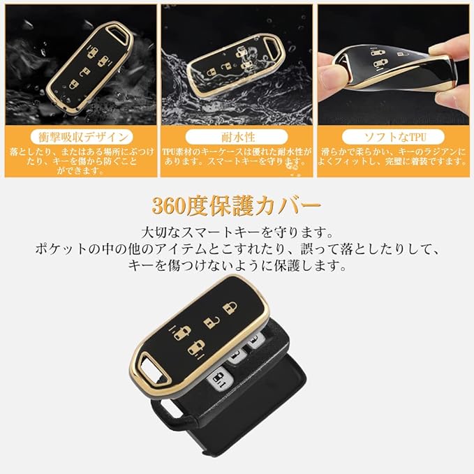 キーケースはソフトなTPU製、手触りは柔らかい、自然な輝きがアクセント、ゴールドエッジ、キーシェルをよりおしゃれより一層華やかに。見た目も良く、傷や汚れに強いキーケースです。ソフトな発色を適えるの煌めきで、お手軽いに想像以上のドレスアップ効果をもたらします。