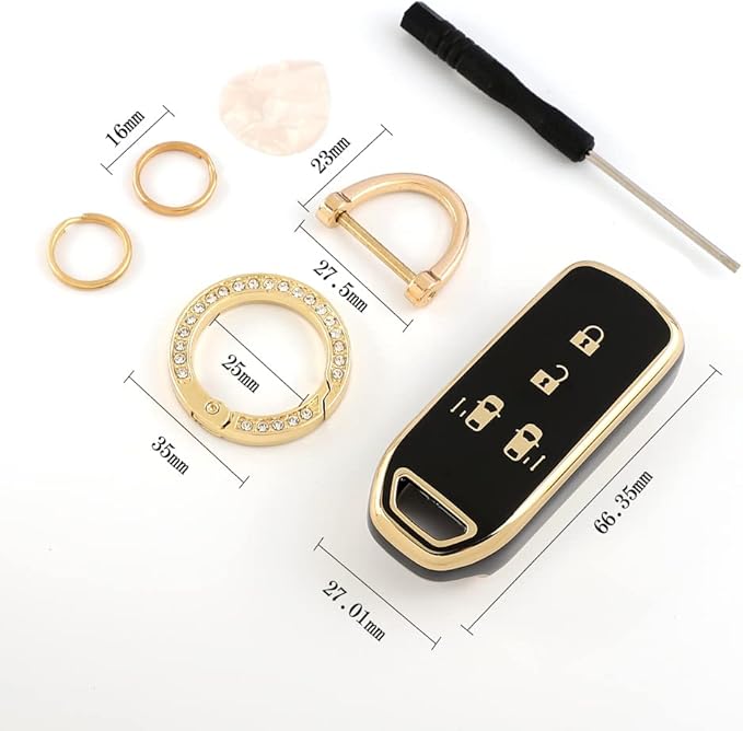 [Catland] ホンダ Nシリーズ キーホルダー キーケース N-BOX カスタム N-BOX JF1 JF2 JF3 JF4 N-WGN JH1 JH2 N-VAN JJ1 JJ2 N-ONE JG1 JG2 Nワゴン 鍵 キーカバー スマートキーケース キーチェーン アクセサリー ドレスアップ パーツ ゴールドキーリング付き 工具付き ブラック | KAZESHOP