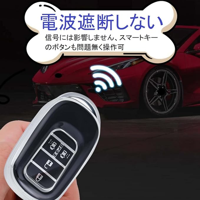 【電波が遮断されないし】ボタンは明確で、信号には影響しません、スマートキーのボタンも問題無く操作可。シルバーエッジのデザイン、キラキラしていて、 メタリックの光沢があり、めちゃくちゃ可愛い、耐久性、使いやすさ、軽さグッとです。また明るい色ではカバンなどから探しやすいです、可愛い目立つのでバッグの中から、素早く取り出せて。