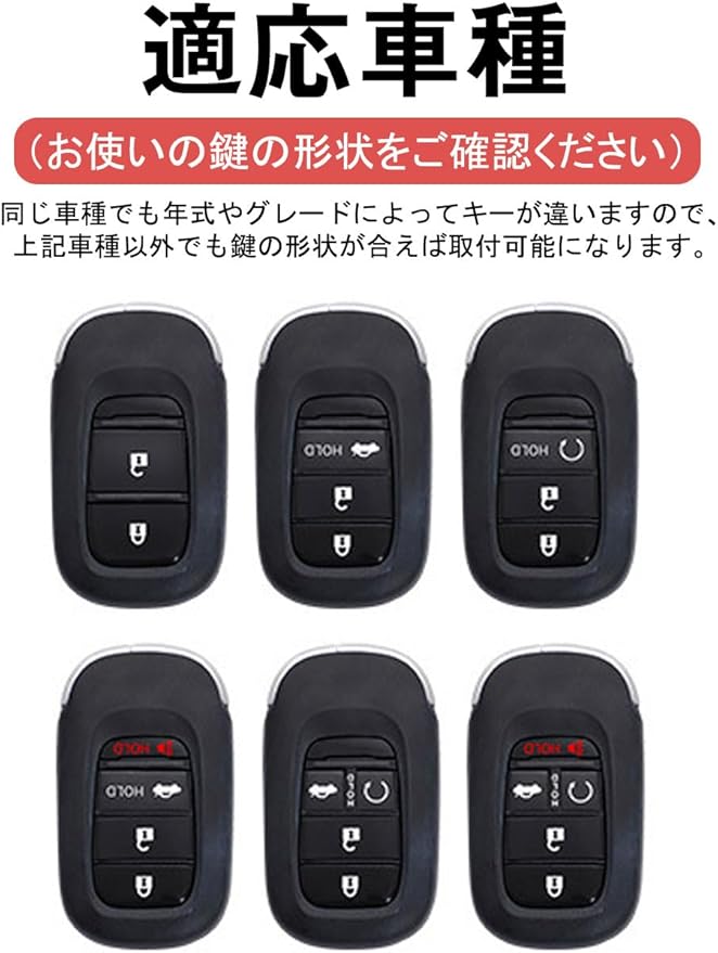 適応車種:このホンダ用 n-box キーケース はN-BOXカスタム JF5 JF6 Custom (2023年10月~)、ヴェゼルVEZEL e:HEV 型式:RV3 RV4 RV5 RV6 (2021.04〜)、 ヴェゼル ガソリンモデル (2022年〜)、 シビック ハッチバック FL1 (年式:2021〜)、 シビック タイプR/ e:HEV (2023年〜)、 新型 ステップワゴン / e:HEV スパーダ /スパーダ ガソリンモデル (2022年〜) 、ZR-V RZ系(2023~)、新型フリード(24年6月~)(お使いの鍵の形状をご確認ください)※上記車種以外でも鍵の形状が合えば取り付け可能になります。購入する前に適合キーモデルの画像と一致しているかどうかをご確認してくださいませ。