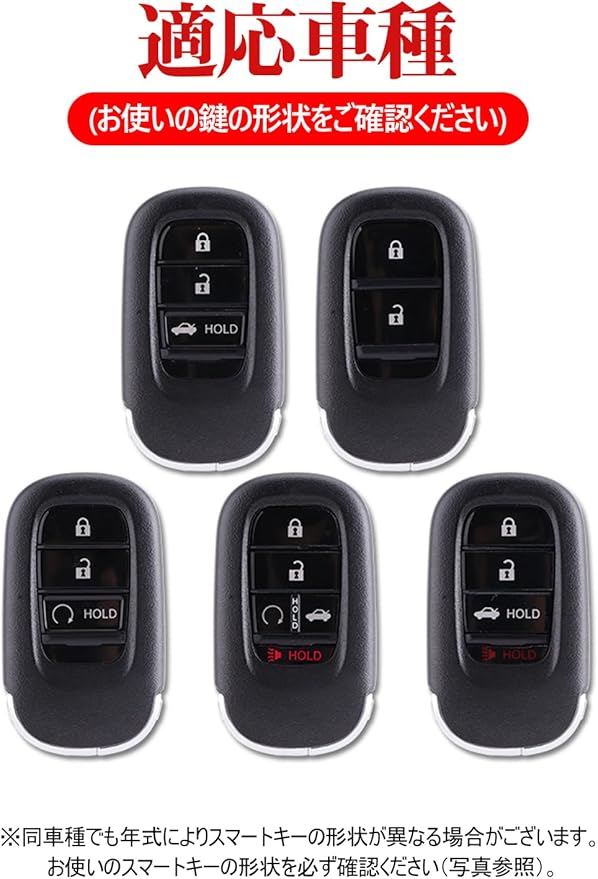 適応車種 : ホンダ N-BOX / N-BOX カスタム NBOX Custom JF5・JF6 、N-BOX JOY ベースグレード / ターボ 、新型 ステップワゴン RP6 RP7 RP8、 ステップワゴン e:HEV スパーダ 、ステップワゴン スパーダ ガソリンモデル 、新型 ヴェゼル ヴェゼルe:HEV VEZEL、 VEZEL E:HEV 型式:RV3 RV4 RV5 RV6 、新型 CIVIC シビック ハッチバック 型式:FL1 、シビック タイプR (年式:2023年〜) 、オデッセイ RC5 2023年12月以降 、 CIVIC シビック e:HEV (年式:2023年〜) 、ZR-V [ZRV] 型式:RZ1 / 2 / 3 / 4 / 5 / 6型 (年式:2023年4月~) 、新型フリード GT系(GT1 GT2 GT3 GT4 GT5 GT6 GT7 GT8)など。(お使いの鍵の形状をご確認ください)。グレードや年式によって適合しない場合があります、お使いのスマートキーの形状を必ず確認ください。