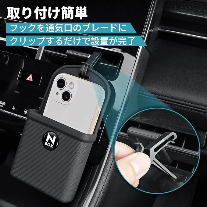 N-BOX 適用 車 エアコン吹き出し口 小物収納 車内整理 NBOX JF 5 6 4系 JOY カスタム ターボ 対応 通気口収納袋 充電ポート付き 耐久性 カー エアアウトレットケース 柔軟な質感 通気口収納ポーチ フック付き 取付簡単 収納ボックス 空気出口収納ボックス 安定性がいい(N-BOX 適用) | KAZESHOP