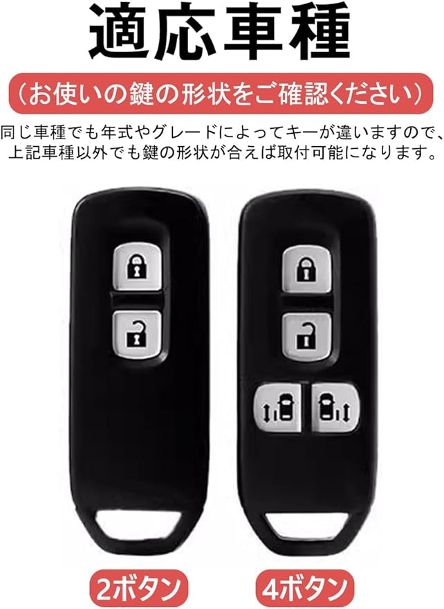 適合車種:このホンダ専用キーケースは新型NBOX / NBOXカスタム / N-BOX / N-BOXカスタム / N-BOX+ プラス / N-WGN / NWGN / Nワゴン / N-WGNカスタム / N-ONE / NONE / Nワン / N-BOX SLASH スラッシュ 等に適用(お使いの鍵の形状をご確認ください)※上記車種以外でも鍵の形状が合えば取り付け可能になります。購入する前に適合キーモデルの画像と一致しているかどうかをご確認してくださいませ。