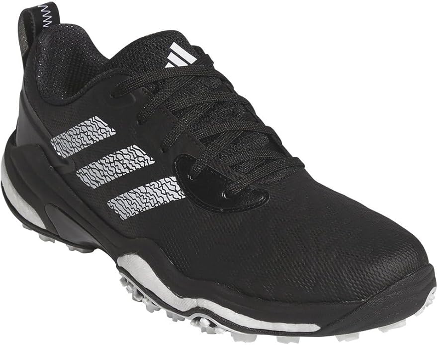 日本史上でもっとも売れたスパイクレスシューズ、コードカオスシリーズが2年ぶりにフルモデルチェンジ。adidas最高峰のツアースパイクレスパフォーマンスを追求して開発されたコードカオス25は前作のコードカオス22の性能全てが更にエレベートされている。最大の特徴は前作から更に約40%も向上したグリップ力。全く新しい、進化したTWISTGRIPは、前作アウトソールの一部からソール面の100%を覆う構造になり、ラグ(凹凸)の形状・個数・配置の全てを見直し、コードカオス特有の地面と足裏全面が一体化するような特性に加えて地面に鋭く噛み付く様なグリップ要素をプラス。アディダスゴルフ史上、トップクラスのグリップ性能をスパイクレスで実現。ミッドソールは、独自の高性能クッショニング素材であるBOOSTとシリーズ初搭載となるLIGHTSTRIKEの2種類ハイブリッドした構造を採用。従来コードカオスの快適なクッショニングをそのままに、スイング時には前作にないパワフルな反発と安定性の両方をもたらし、メリハリ感の強い性能を実現。アッパーには新感覚の履き心地と性能を実現する新素材、うどんニットアッパーを採用。その名の通り、うどんのような形状をしたモチモチとした繊維素材がアッパーの内部にサンドイッチ状に挟まれている構造によって、アッパー内部に一般的なニットより空気を多く含み、枕が内蔵されているかのようなソフトで快適な履き心地をもたらす。加えて、一定方向には優れた伸縮性がありながら、逆方向には伸びないという特殊な性質によって、前作より歩行時などの動きやすさや快適性がアップしながらも、一定方向には伸びないことでサポート力も同時に向上。全面的に薄いPUフィルムで覆い、アッパーの伸びの調整をしながら、高い防水性も誇る。