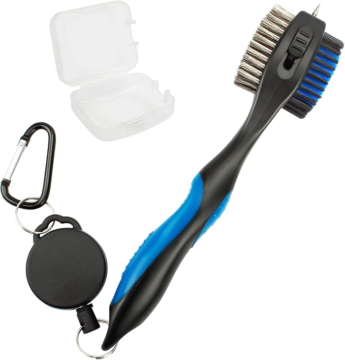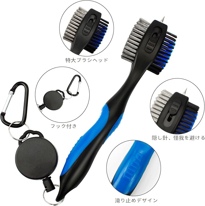 VIPMOON ゴルフクラブブラシ 清潔用 ゴルフクリーニングキット ワイヤ ナイロン 針収納可 ゴルフ メンテナンス用品 靴底 アイアンクリーナー カラビナフック付き 携帯便利 軽量 多用途 アイアン 溝掃除 | KAZESHOP