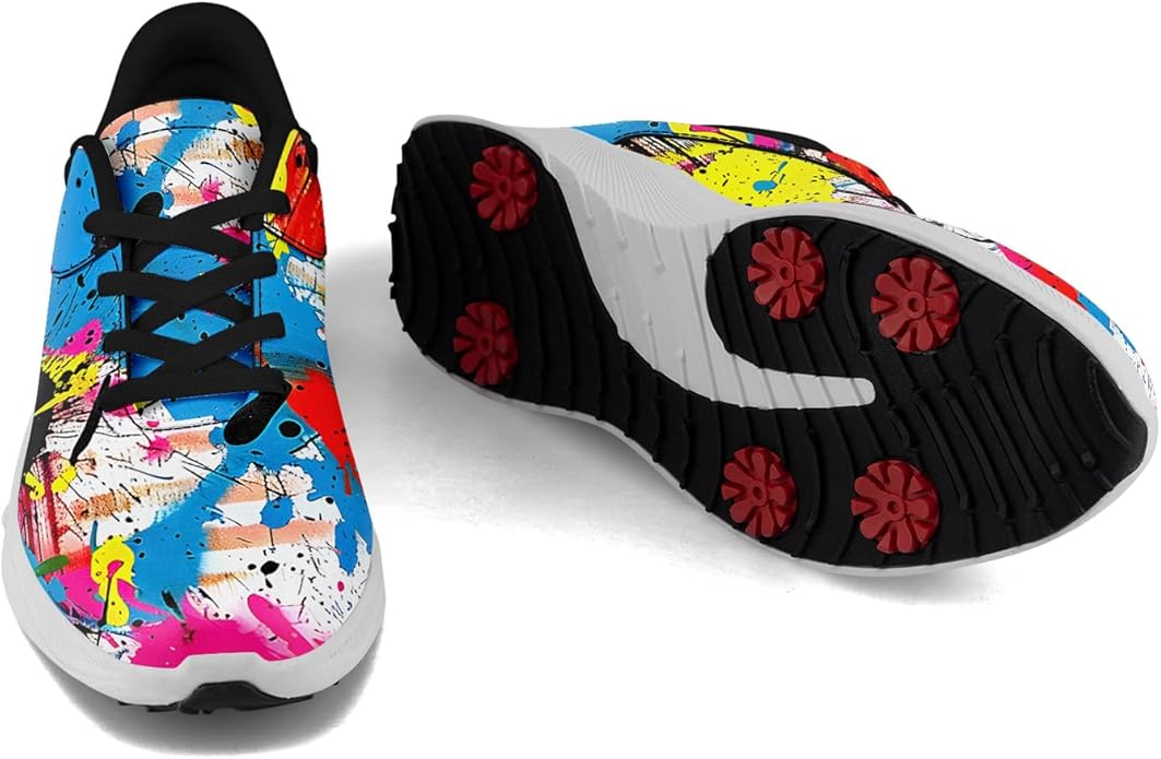 【グラフィティアートデザイン】大胆なグラフィティアートと流線的なシルエットが融合。鮮やかなスプレーの飛沫や手描き風のラインが、プレイヤーの情熱と躍動感をそのまま映し出します。芝の上では視線を集め、街ではアーバンストリートの自由なエッジを演出。ゴルフシューズの枠を超え、機能美と芸術性を兼ね備えた新しいスタンダードです