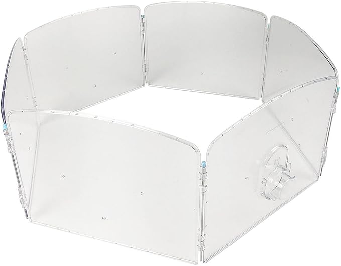 ※飼育用スペースではありません。必ず飼育者の管理下(目の届く範囲)で遊び場として使用してください。※逃げ出したり、事故の恐れがある場合すぐに対応できるように、必ず観察下の元での遊びスペースとしてご使用下さい。※ハムスターによっては、設置した用品の上に登ってサークルを乗り越えて逃げる場合があります。※ゴールデンハムスター等大きな体格の個体の場合は、サークルをずらしてしまう場合があります。※パネルとパネルの接続を無理のかかる角度に折り曲げると、接続部ツメ等が破損しますので、絶対にしないで下さい。※パネルの穴にかじり木等を取り付ける場合はネジを締めすぎないようにして下さい。また、取り付けたパーツに無理な荷重をかけないで下さい。パネルが破損する恐れがあります。※また、ハムスターがパーツの上に登って、サークルパネルを乗り越えるようであれば、パネル穴にパーツを取り付けないで下さい。※飼育対応の生き物はあくまでも目安ですので、ご注意ください。※生き物は、種類や性格、体格(体重やサイズ、成長など)により、個体差があります。飼育者の方は生き物の行動や習性をよく理解・観察して異常や危険を感じた場合は、直ちに使用を中止してください。※本品は、サークル外への脱走を完全に防ぐ物ではありません。使用するときは、生き物から目を離さず、脱走や事故がない様に観察しながら行うようにしてください。※飼育時における事故等に関しましては、責任を負いかねますので予めご了承ください。※製品は改良の為、予告なく仕様や色が変更する場合があります。
